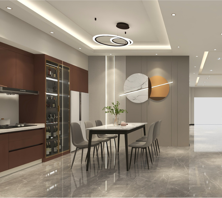 設計說明長型的展廳,空間縱深較長,劃分洽談區(qū)、前臺、板材展示區(qū)、定制區(qū)等區(qū)域,設計S型動線走向,通過展廳布局節(jié)點,增強消費者的情景空間體驗。 在定制區(qū),設計師更...