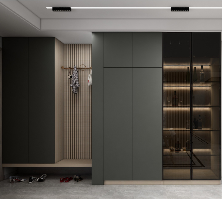 玄關空間設計圍繞「進」「出」兩個動作傳遞出不一樣的「家之初印象」是凌亂的鞋子?還是有序的收納?跟著偉業(yè)ENF生態(tài)板設計,被贊爆啦~ 1、輕奢風從室外轉向室內,玄...