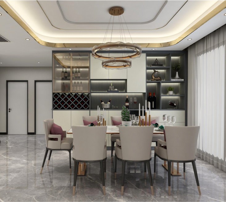 地點(diǎn):山西太原功能:偉業(yè)全案高定 餐廳區(qū)域一字型櫥柜,縱向劃分“洗-切-炒”操作動(dòng)線,引入潮流的“餐桌+島臺(tái)”設(shè)計(jì),聯(lián)合條狀吊燈,合力打造輕奢的浪漫氛圍,高效的...