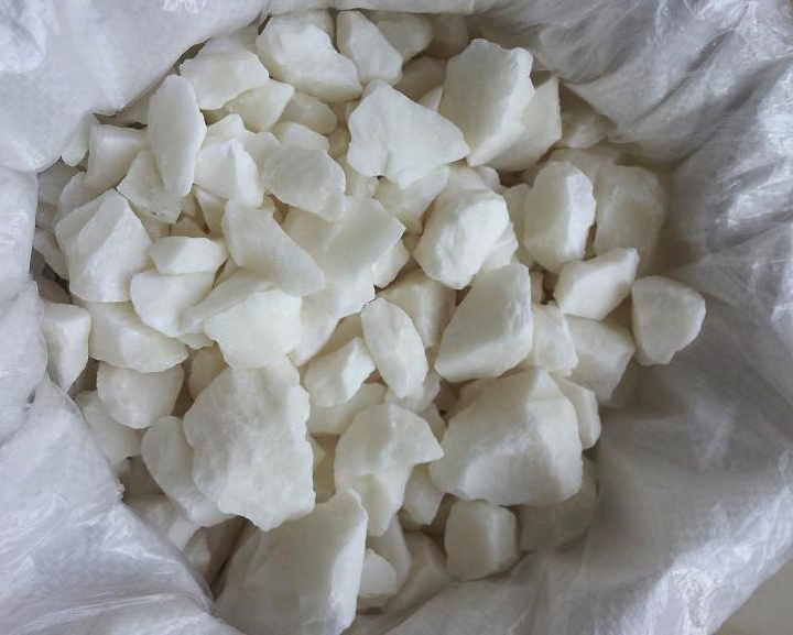 外觀::白色塊狀晶體。生產(chǎn)包括2個(gè)步驟,第一液體在特殊容器中自然結(jié)晶,第二步經(jīng)過(guò)破碎機(jī)破碎成不等大小的塊,第三步通過(guò)篩網(wǎng)篩選出所要求的無(wú)鐵硫酸鋁規(guī)格尺寸。